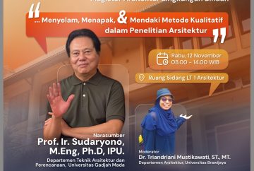 The Master’s Program in Architecture of the Built Environment, Department of Architecture, Faculty of Engineering, Universitas Brawijaya (FT UB), held a guest lecture titled “Diving, Stepping, and Climbing Through Qualitative Methodologies in Architectural Research” on Wednesday, 12 November 2025. The ...